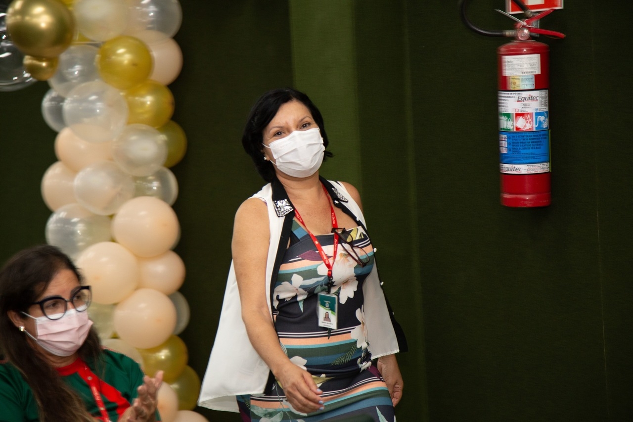 Após a reprodução da reportagem, a professora Marta subiu ao palco, contou um pouco mais sobre a sua história de vida, incentivando toda equipe presente a buscar superar todas as barreiras que possam surgir no meio do caminho.